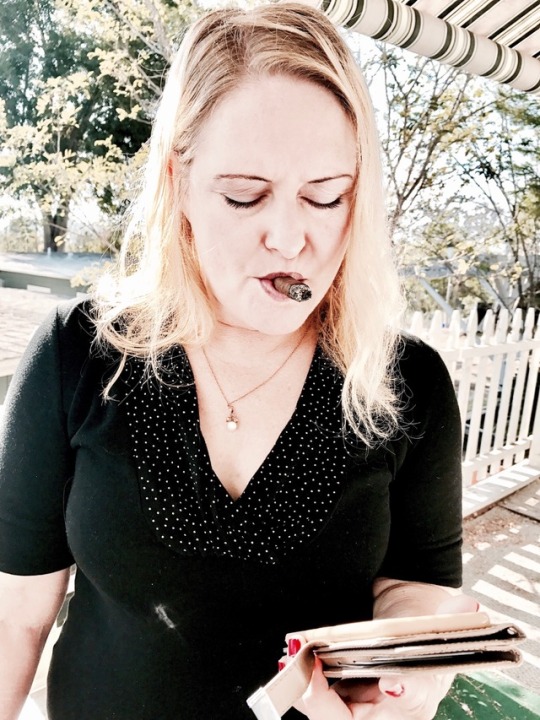 The thick cigar is always in her mouth. I do not know the reason but maybe she lacks of a big dick.