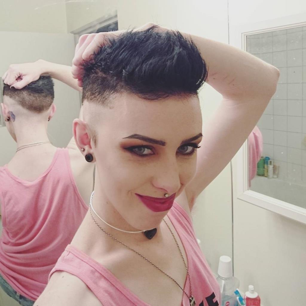 Side shaved suicidegirl Posted on 03/22/2018 by ExtremeHaircut Reply Before: After: Her links: suicidegirls.com https://www.instagram.com/billybombbshell/ Click to rate this post! [Total: 4 Average: 5]
