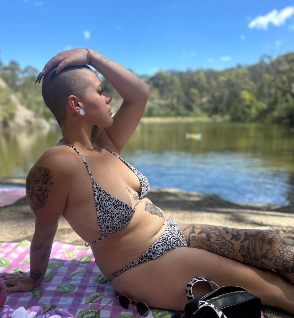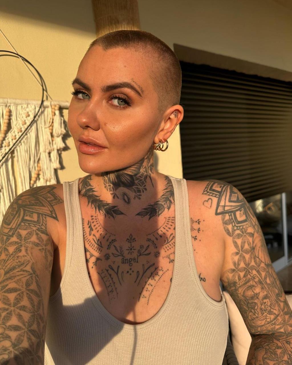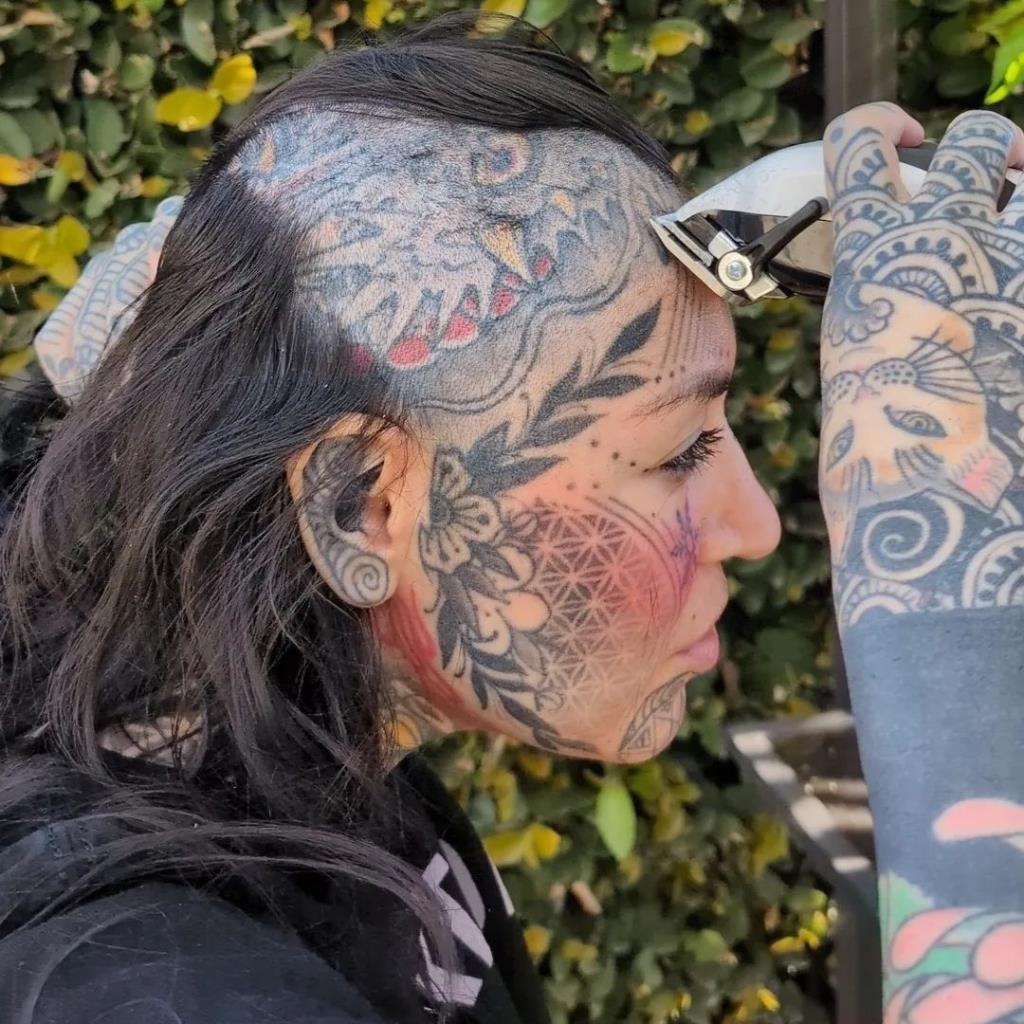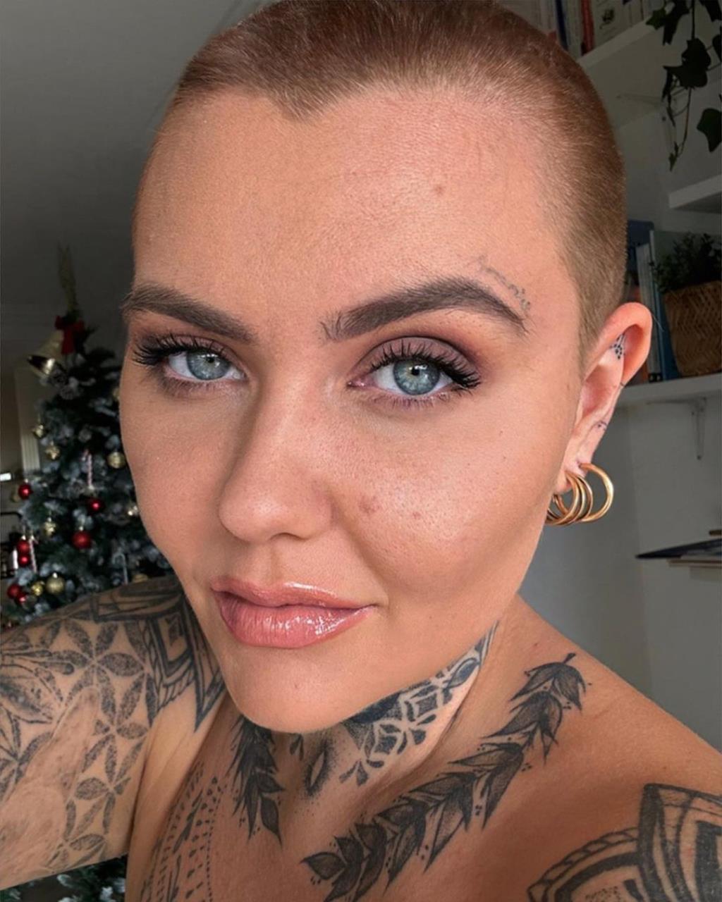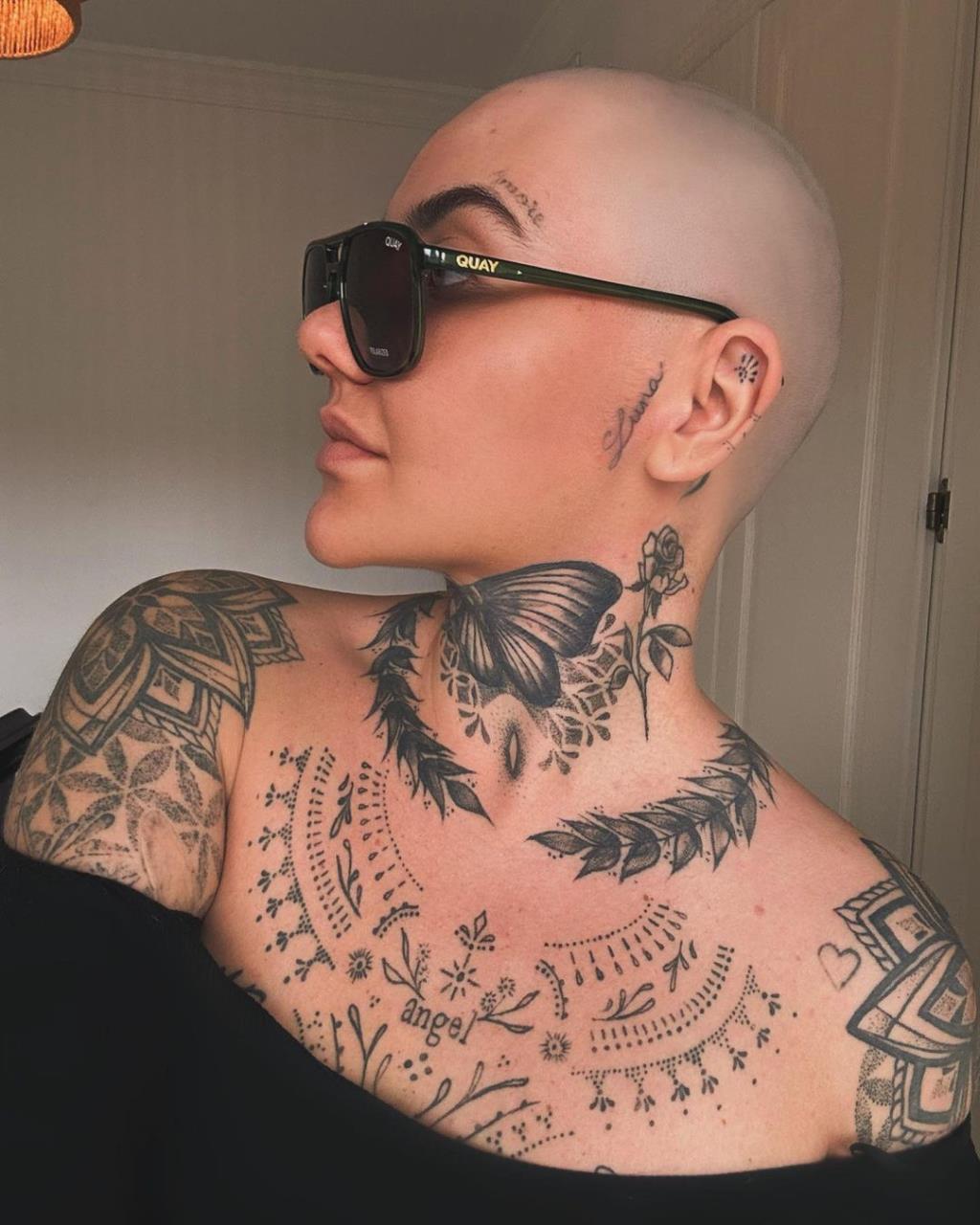 @kayfiresofficial Buzz Buzz ?? #headtattoo #tattooreveal #headshavegirl #diyhaircut #headshaveathome #goldenspiraltattoo #nautilustattoo #bikinilife #inkedlife #althair ? Confident – Todays Hits