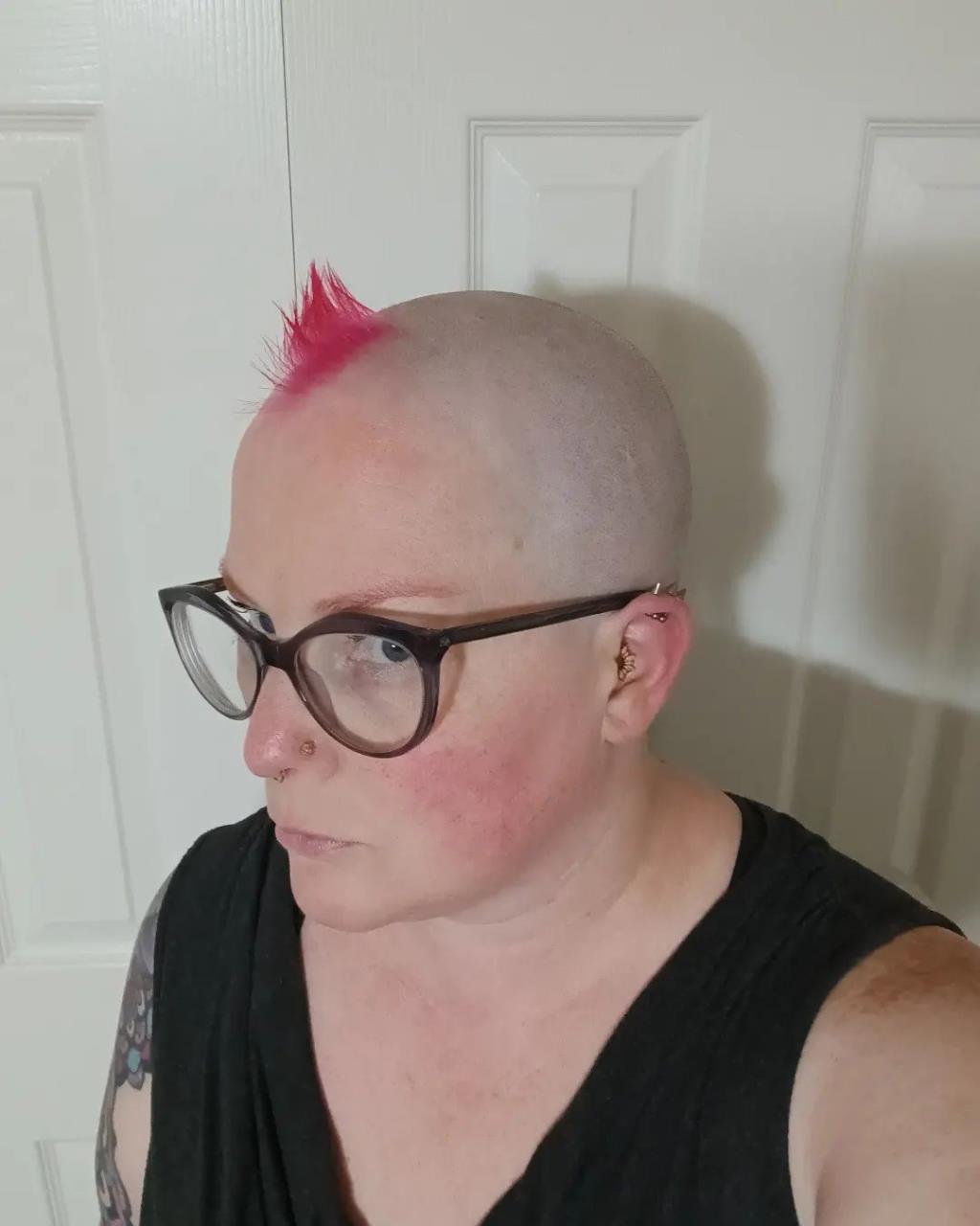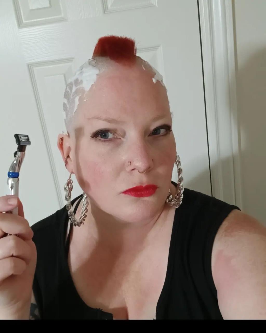 @eyecandyhair punk to bald #punkgirl #punkgirls #bald #baldgirl #baldgirls #headshave #girlheadshave #headshavegirl #punk #chicken #redhead ? original sound – eyecandyhair