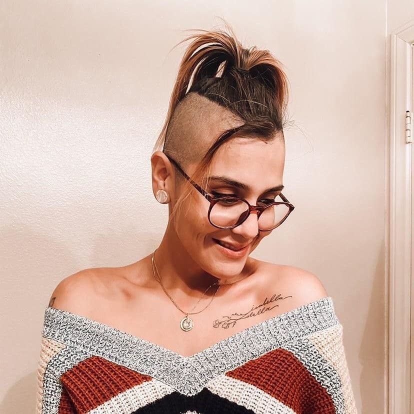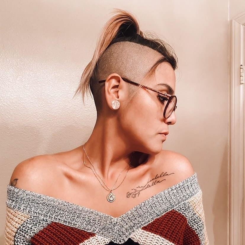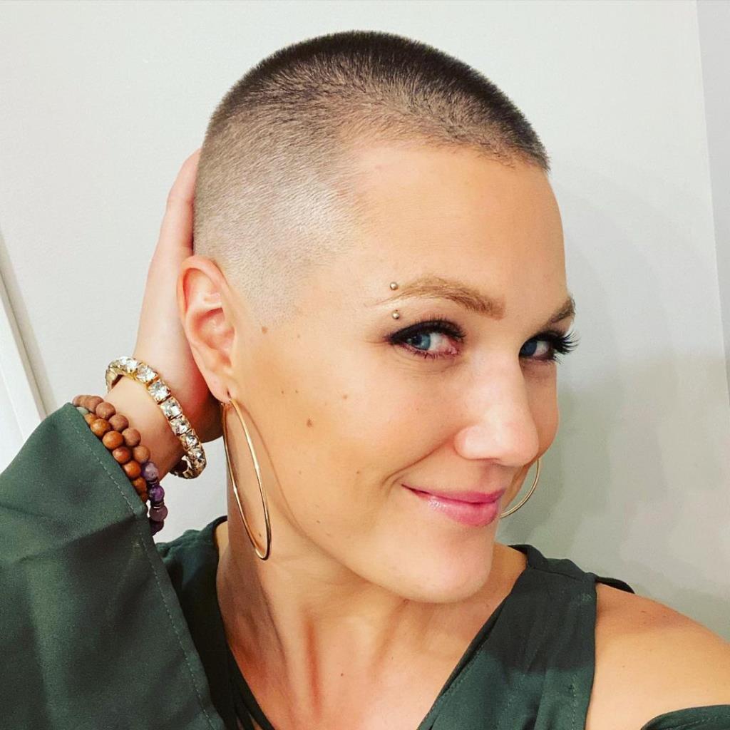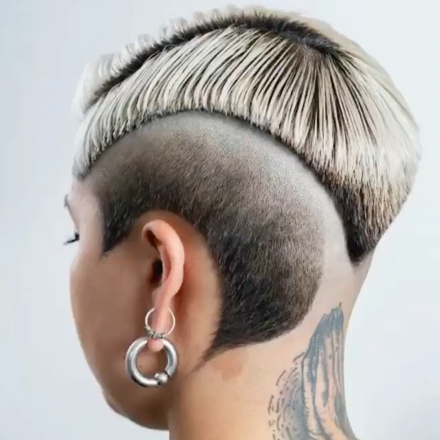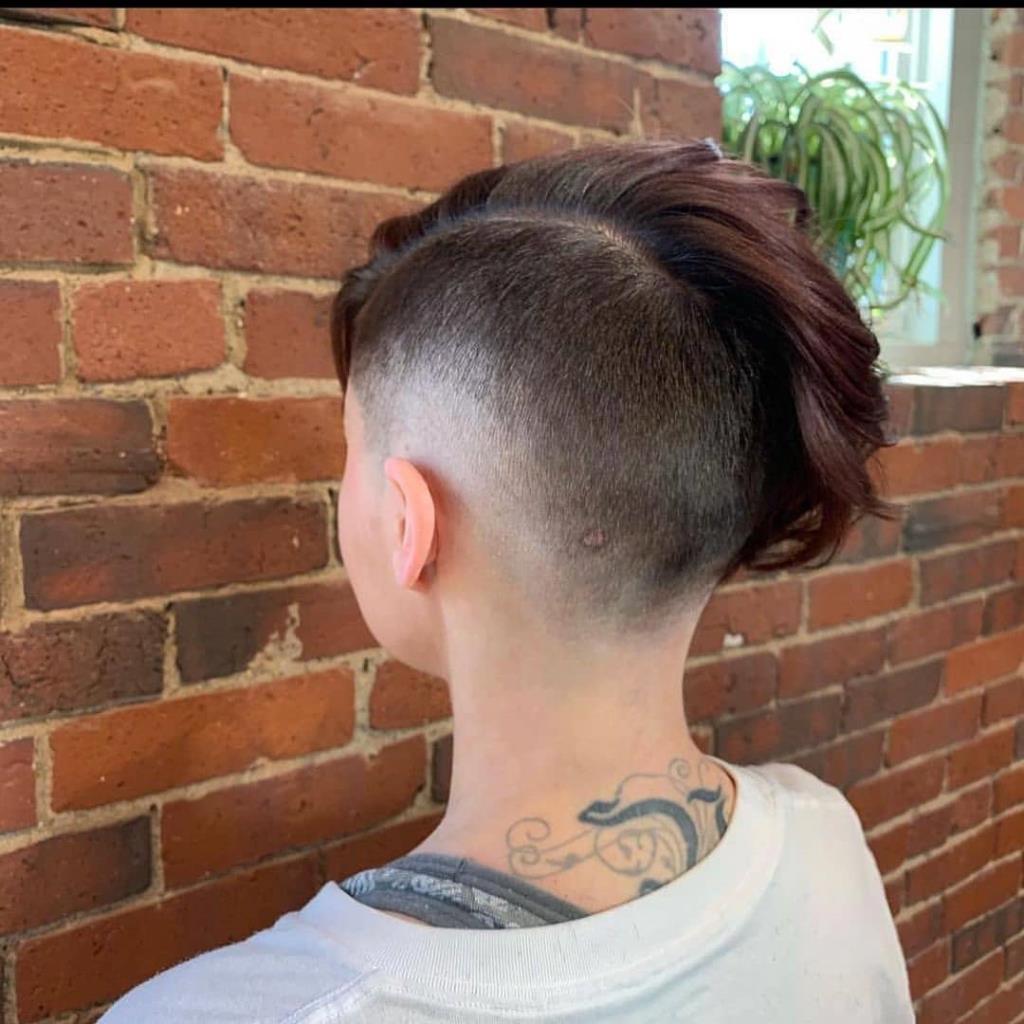 Pink girl buzzcut her hair