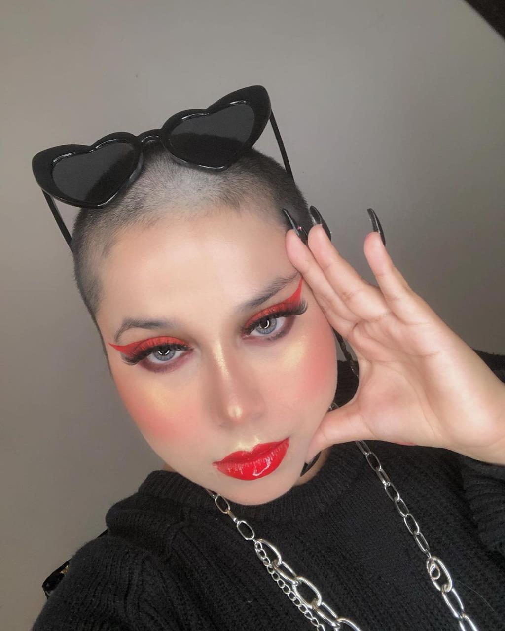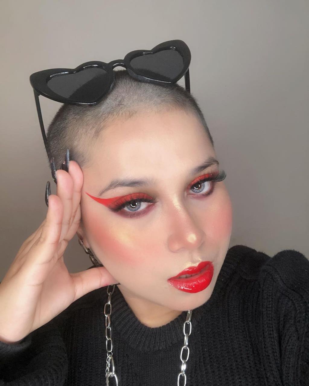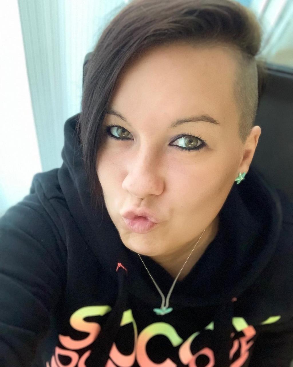 Pink girl buzzcut her hair