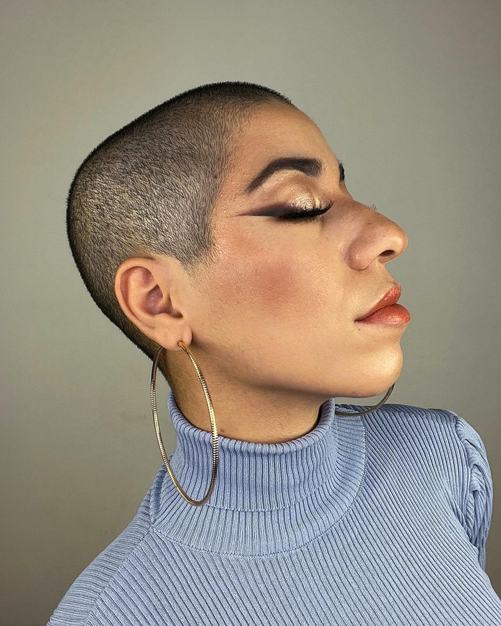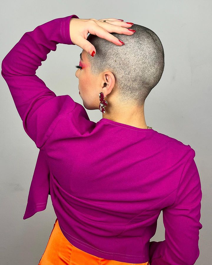 @eyecandyhair I did it #bald #baldhead #baldbychoice #baldgirl #baldgirls #baldwoman #baldgirlbychoice #headshave #haircut #haircutchallenge #selfheadshave ♬ original sound – eyecandyhair