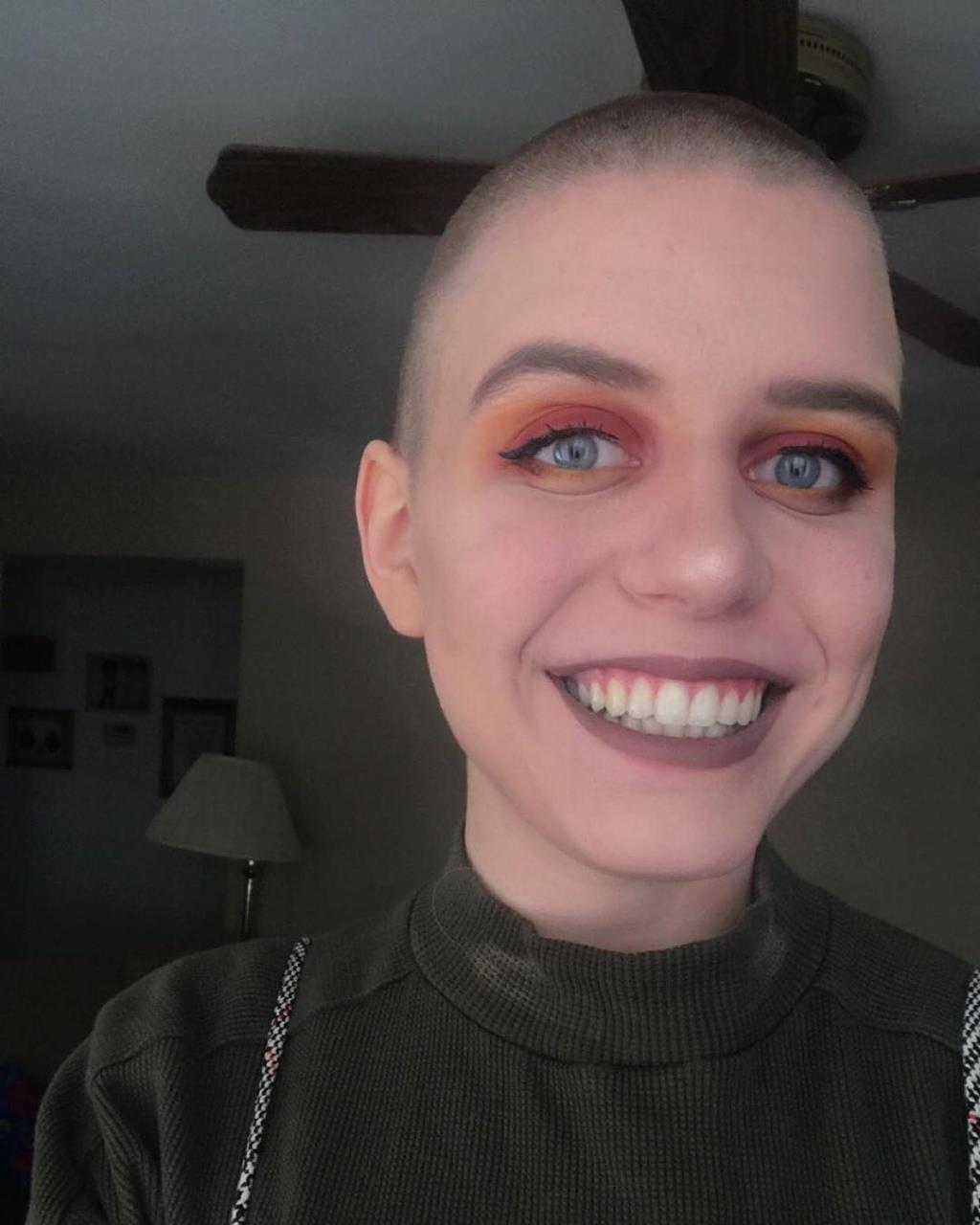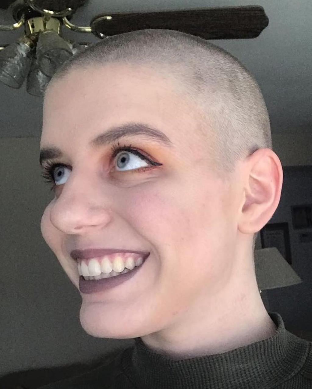 This weird chick went bald. Posted on 01/18/2019 by ExtremeHaircut She is smiling very strangely and this smile makes her pictures so weird. Click to rate this post! [Total: 4 Average: 5]