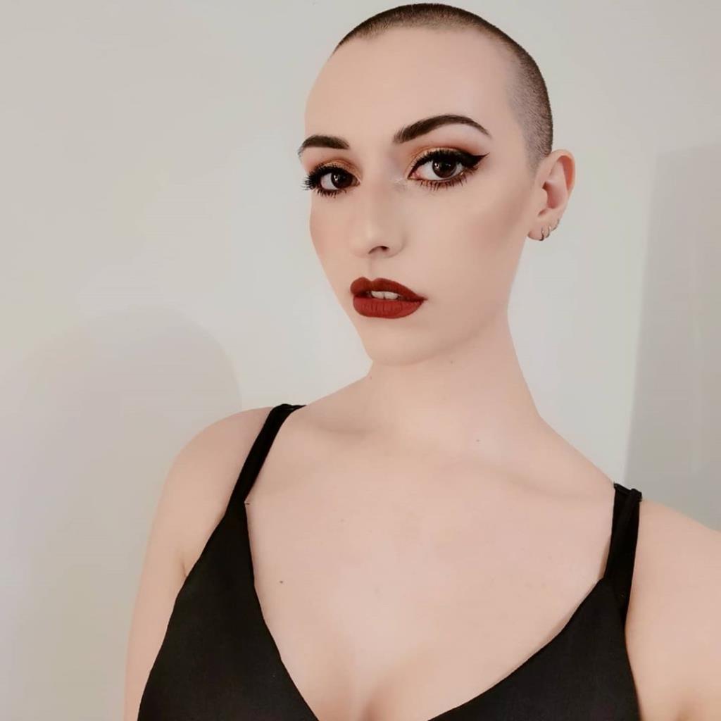 Very beautiful girl. She looks stunning with a shaved head.