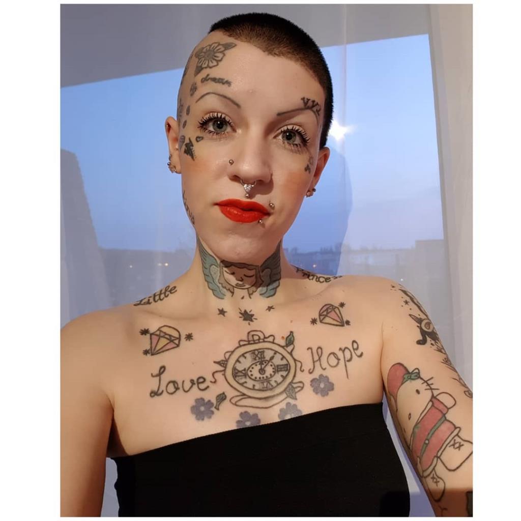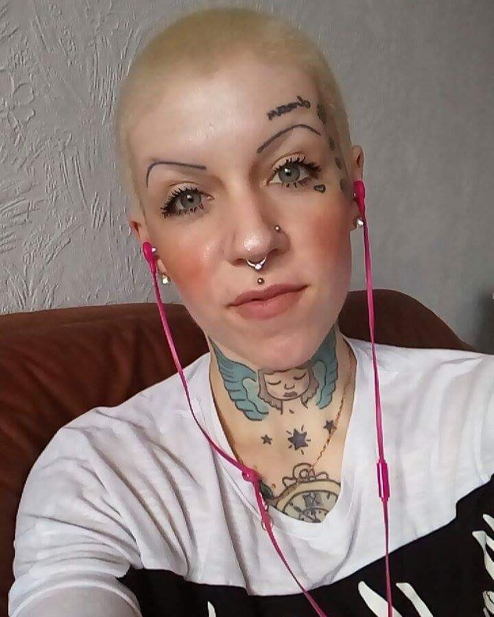 Bald girl with the most weird face you’ve ever seen