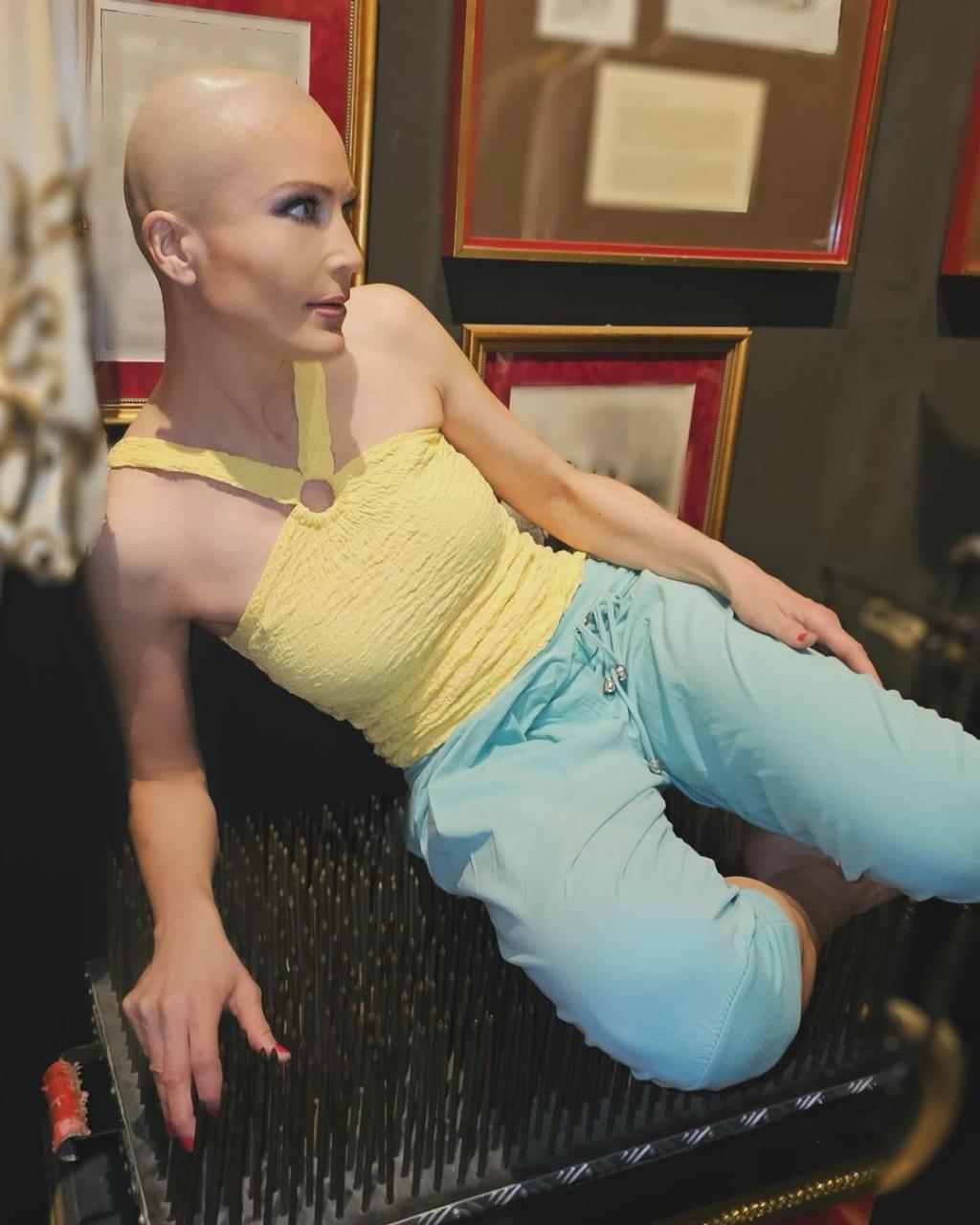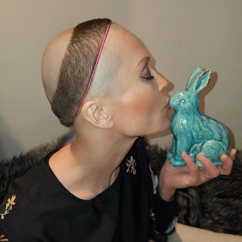 @eyecandyhair Bald girl with stripes on head