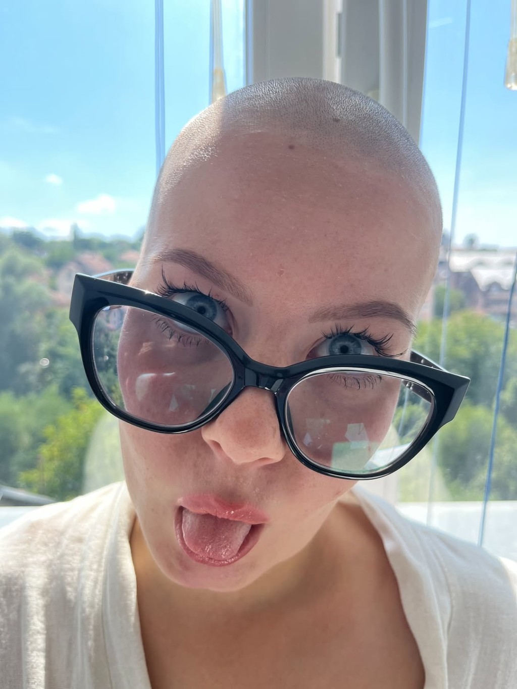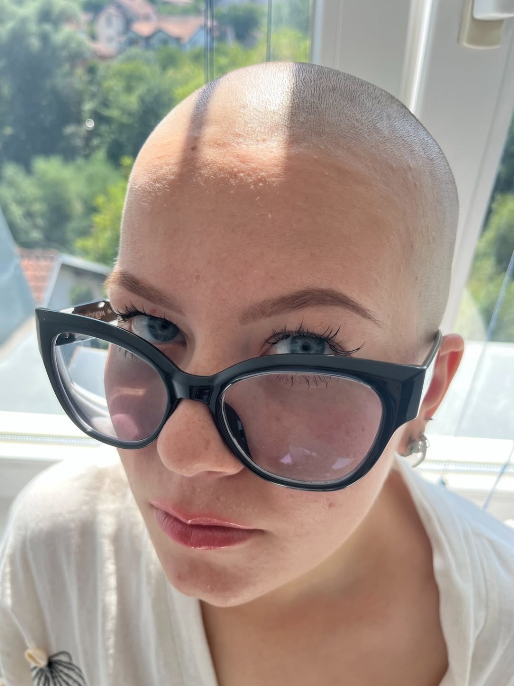 Bald woman